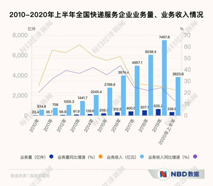 2020年因疫情改变的特殊经济环境,中国快递行业增量更有可能是史无前例的。