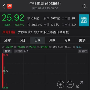 有惊无险地度过首日,却没曾料到上市第二天,股价就直接跌停了。9月29日,上市第三天的中谷物流股价盘中一度跌停,短短三个交易日,这只新股就差点连吃了2个跌停。