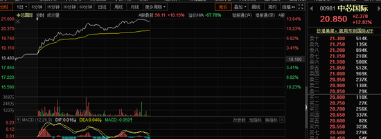 今日中芯国际A+H股集体大涨,截至发稿,A股中芯国际涨幅达10.15%,报56.11元/股,港股中芯国际涨幅达12.82%,报20.85港元/股,距离高盛目标价28.7港元还有40%空间。
