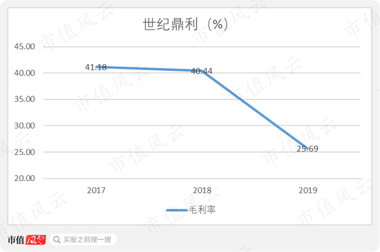 在这项盈利能力堪比贸易的IT产品分销业务的带领下,世纪鼎利的毛利率在2019年大幅下滑了14.75个百分点至25.69%,成功实现三连降。