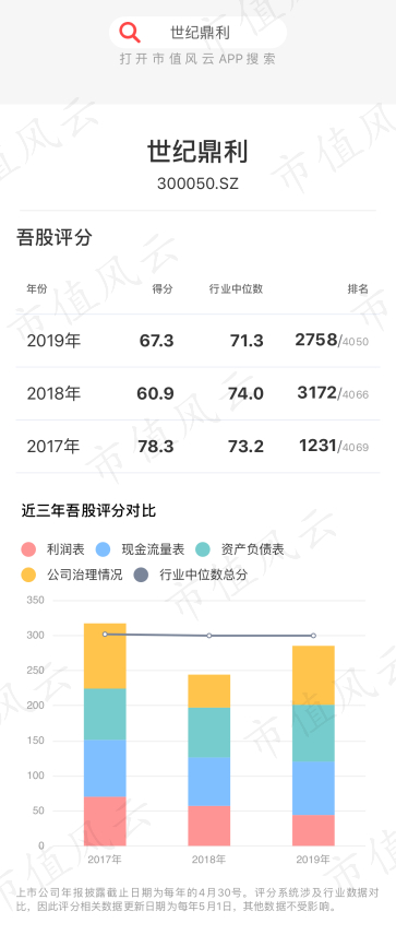 最后,再向老铁们显摆一下市值风云的“吾股大数据”。从2017年到2018年,世纪鼎利的排名直线下滑,跌出3,000名开外。