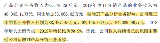 其实,不过又是一只纸老虎罢了。对此,上市公司自己也承认了。2019年业绩大增的原因是增加了IT产品分销业务,如果剔除这一影响,那么营收将同比下滑-9%。