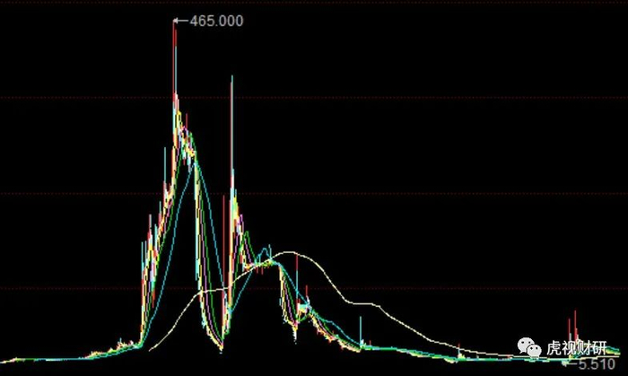 这是德御系旗下的稳盛金融股价走势图,15年12月最低6块5,17年2月最高干到465元,13个月,超70倍,什么华尔街啊,金融之王啊,不存在的。