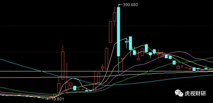这也是稳盛金融部分股价走势图,六七根大阳线,股价直接从19.8干到390块,20倍涨幅不费吹灰之力,其中2017年6月6号和7号,涨幅分别是107.16%、153.1%,什么华尔街啊金融之王啊,不存在的。
