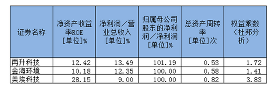 2017-2019年金海环境的加权ROE分别为11.64%、8.84%、10.34%,再升科技加权ROE分别为9.95%、12.65%、12.48%,而同期美埃科技为12.97%、16.29%和27.16%,尤其是2019年远超行业对手。