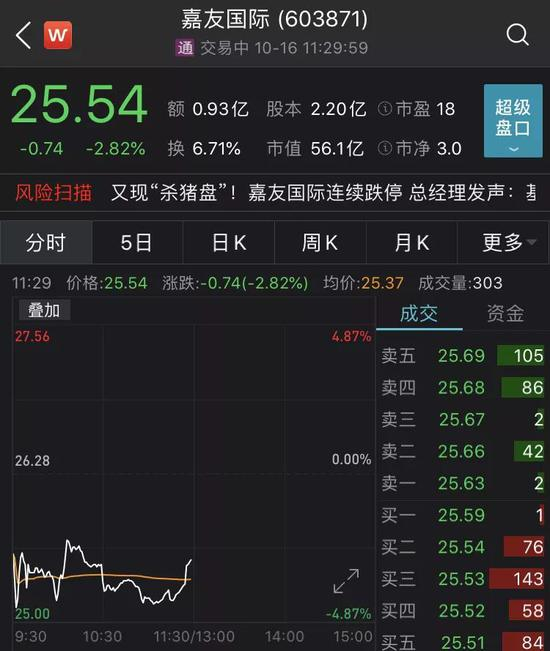 截至早盘结束,近3个交易日,嘉友国际股价累计下跌18.14%,市值蒸发12.45亿元。公司尚未止跌,早盘收跌2.82%,报25.54元/股,成交额9349万元,换手率6.71%。