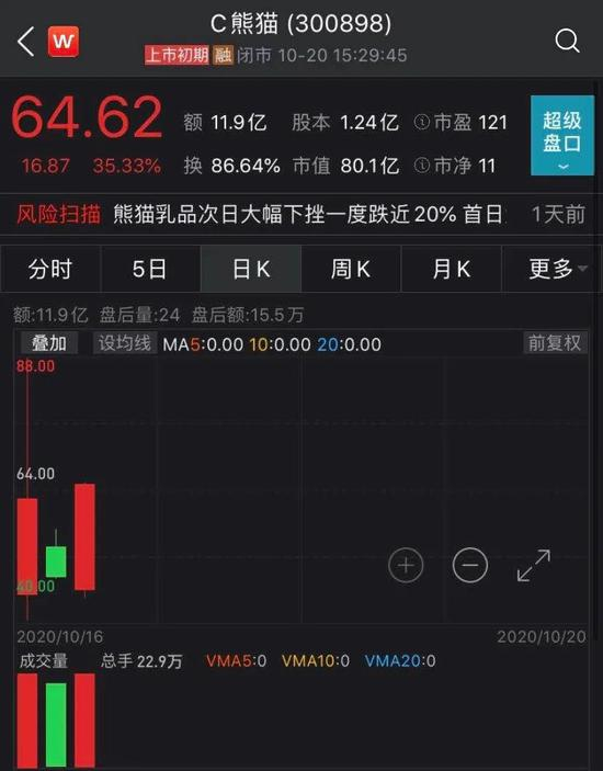 今日,10月16日上市的创业板次新股熊猫乳品在上市第三日大涨35.33%,股价报64.62元。
