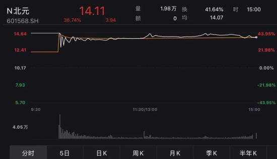 北元集团上市首日开板