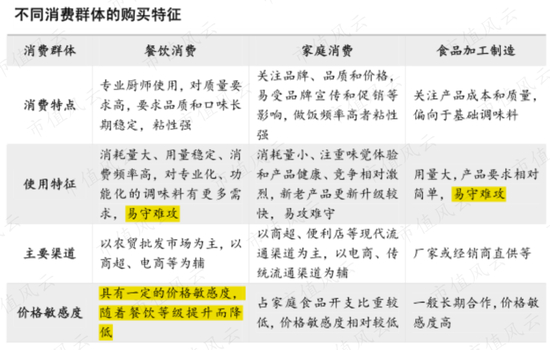 同时,餐饮企业和食品加工制造企业对调味品的用量较大、需要保持价格和品质的稳定。因此对于调味品生产商和销售商来说,这些属于“易守难攻”的客户。