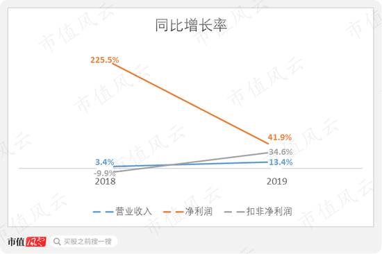 2018年和2019年,公司的营业收入分别同比增长3.4%和13.4%,但净利润却分别同比增长225.5%和41.9%。