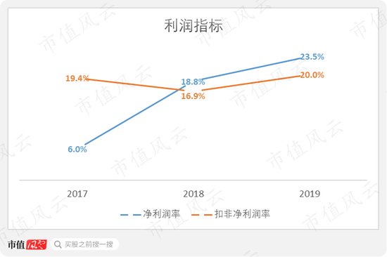 2018年,公司扣非净利润率为16.9%,为近三年最低。