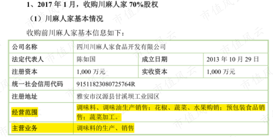 花椒的采购季节通常是7-9月。也就是说,公司从2017年起,就开始将每年接近一半的鲜红花椒采购订单,交给一家刚成立不足3个月,同时注册资本只有3万元的企业。