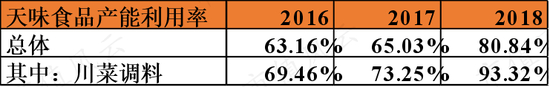 对比行业龙头之一的天味食品,虽然其总体产能利用率低于公司,但在2016-2018年逐年上升。