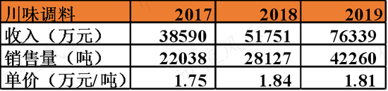 2019年,公司川味复合调味料各系列产品的平均售价也有不同幅度的上涨,带动川味复合调味料总体平均售价同比上涨3.76%。
