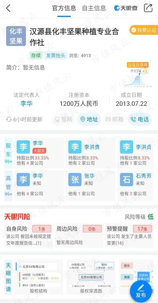 被汉源伊鑫从2018年起取代第一大供应商位置的是“汉源县化丰坚果种植专业合作社/汉源县治华商贸有限公司”(属于同一实控人,合并简称“汉源化丰”)。