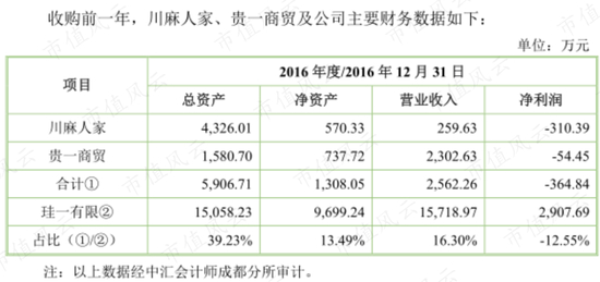 披露显示,在收购发生前的2016年,川麻人家的净资产为570万元,营业收入为259.7万元,但净亏损高达310.4万元。