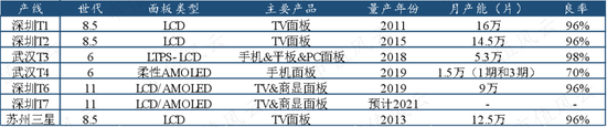截至2020年9月,公司拥有LCD和AMOLED产线共7条,总产能位居国内第二,具体情况如下。