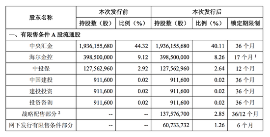 截至上市公告书签署日,中央汇金直接持有公司19.36亿股内资股,占公司本次A股发行后总股本的40.11%,为公司控股股东。
