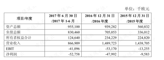 2015年、2016年、2017年1-6月营业收入分别是14.39亿欧元、14.90亿欧元、8.67亿欧元,净利润分别亏损958万欧元、4799万欧元、5276万欧元。