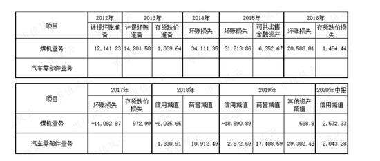 2017年至2020年中报,煤机业务的资产减值金额非常少,2017-2019年均有坏账损失冲回,累计冲回3.87亿元。