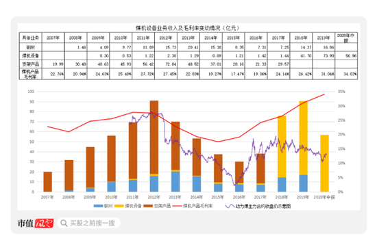 动力煤价格从2013年开始一路下降,由此,也引发煤机设备业务收入逐年下降,同时,该业务的毛利率也出现了下降;