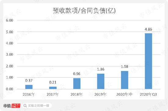 整体上至纯科技的预收账款是增长的,而2020年第三季度合同负债居然高达4.86亿,比2020年上半年的暴增三倍!