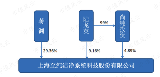 至纯科技的实际控制人是蒋渊女士,直接持有29.36%的股权。陆龙英为蒋渊的母亲。