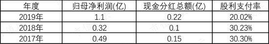 上市后每年都分红,2017年-2019年股利支付率为30.30%、30.23%、20.02%。