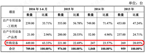 因此,我们可从专用设备的自产和外购比例,可以看出是不是纯碎的“包工头”:2013-2015年外购设备比例在20%左右,2016年1-6月居然提高到63.33%。