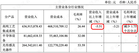 (1)2019年传统主业高纯工艺系统营业收入仅6.37亿,同比减少5.51%,同时毛利率比2018年减少1.75%;