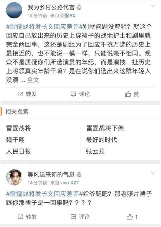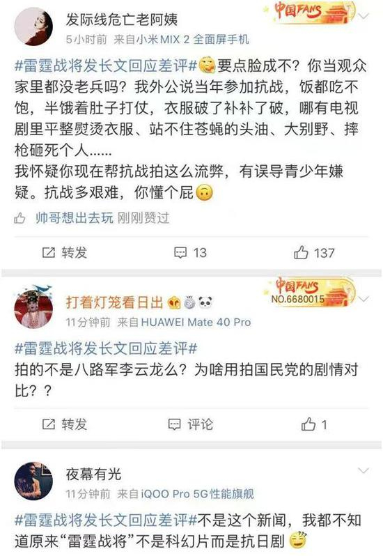 人民日报更是发文,直指新版亮剑把“偶像剧”套路用在抗日题材上,文章指出,表面看来与过去的抗日神剧相比,《雷霆战将》并没有手撕鬼子、单手掏心、手榴弹炸飞机等雷人情节。但是这部剧的离奇之处仍然让人咂舌,过于脸谱化的设计,过于浮夸的表演,明显缺乏事实依据的情节设定,让网友们评价为:“这部剧完全没有脱离抗日神剧的套路——只不过披上了一层‘青春热血偶像剧’的外衣。”