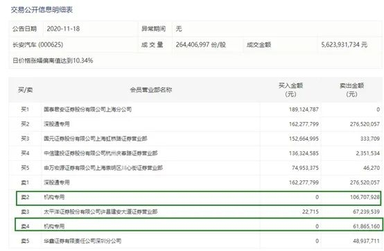此前的11月18日,两机构席位分别卖出1.07亿元和6187万元长安汽车股票。