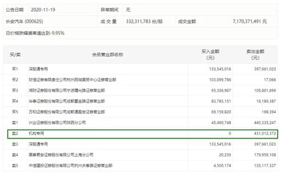 在股价大跌的同时,成交也进一步放量。长安汽车全天成交71.7亿元,成交额创出该股历史最高纪录。