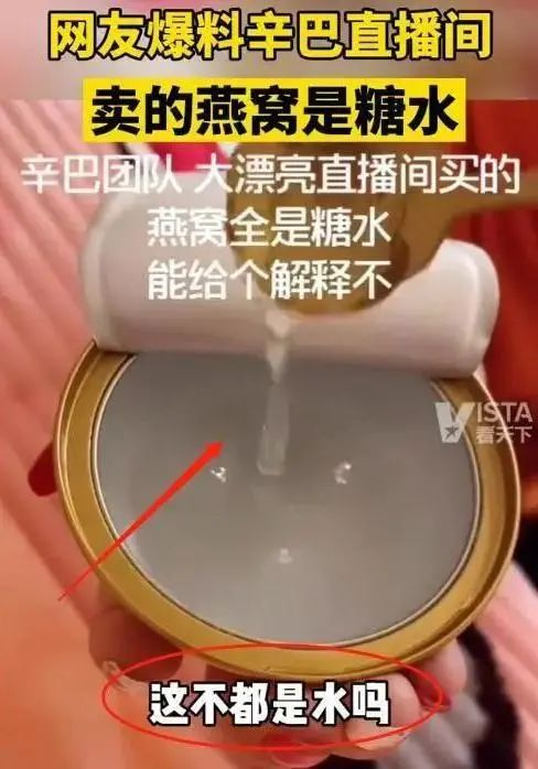 日前,有网友爆料在快手主播“辛巴”辛有志及其徒弟“时大漂亮”的直播间里买的燕窝是糖水,再其发布的视频里可以看出,一罐燕窝清淡的像糖水一样,当时就引起了不少媒体的转发和报道,引起了网友的热议。