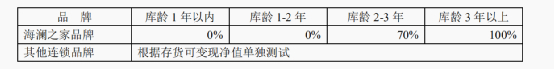 2019年之前,海澜之家对于海一家品牌计提存货跌价准备的方式是库龄一年以内的无需计提,一年以上的全额计提。但是2019年开始,海一家品牌被并入海澜之家系列,存货跌价准备计提方式改变为如下: