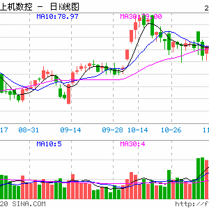 11月30日,受新签百亿合同消息刺激,二级市场上,上机数控股价一度涨停。截至下午收盘,最终收涨8.62%,达87.71元/股。