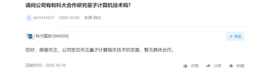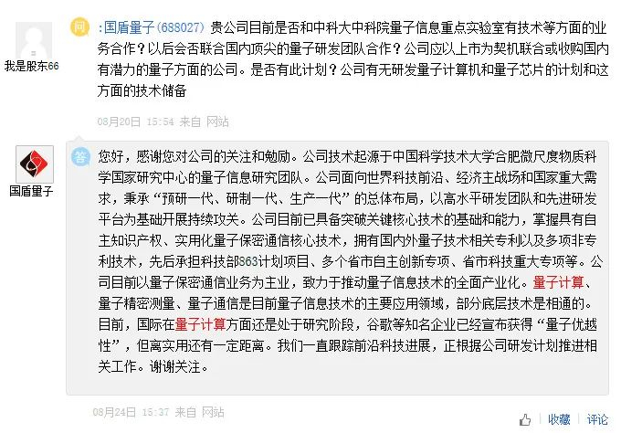 “九章”问世,投资者关注,哪些A股公司布局了量子科技。此前,在互动易上,多家A股公司也披露了其在量子科技领域的布局。