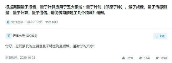 天奥电子表示,公司涉及的主要是量子精密测量领域。