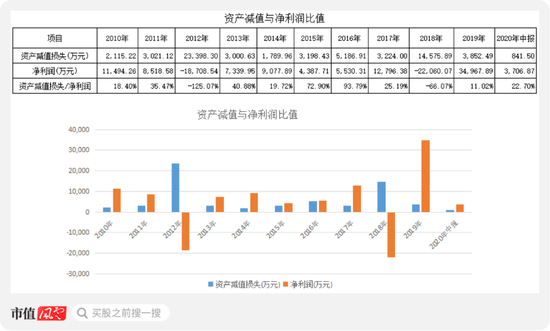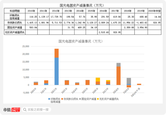 2010年以来,国光电器的资产减值与净利润的比值较大,2012年、2018年大额资产减值损失直接导致当期净利润亏损,2013-2016年,资产减值损失与当期净利润的比值非常大;而2020年中报,资产减值损失与净利润的比值达23%。