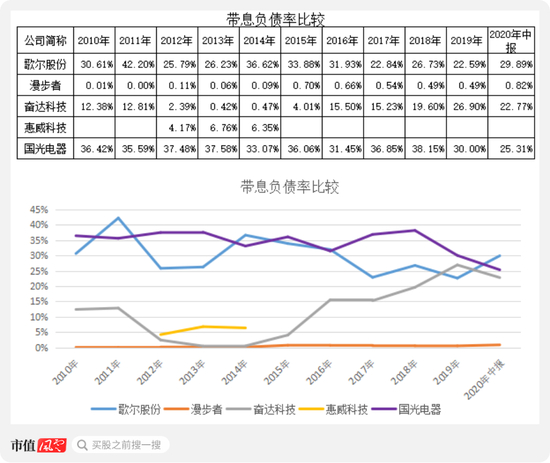 相对而言,漫步者、惠威科技等的带息负债率则是非常低。