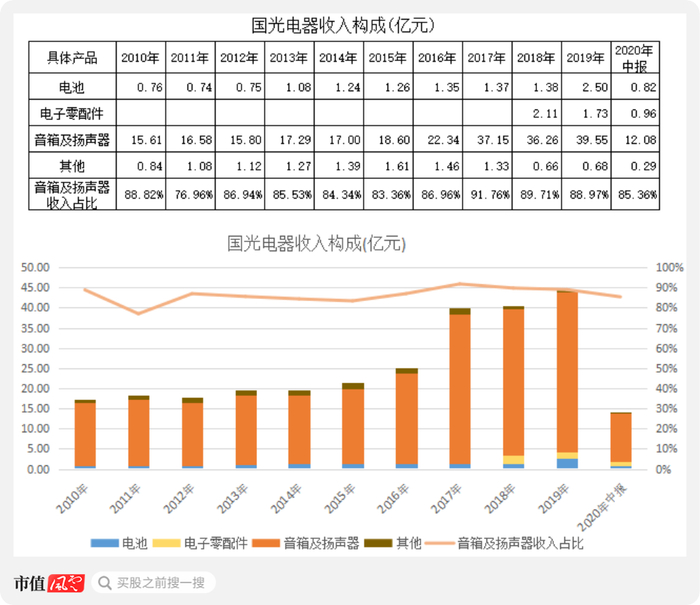 智能音箱产销量激增直接带动了核心元器件扬声器的需求,也就使得国光电器的音箱及扬声器业务收入较快增长。