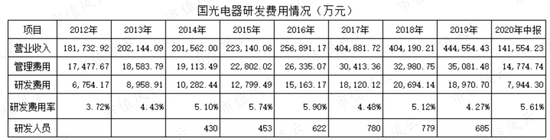 长期看,国光电器管理费用和销售费用无明显的变化,因此,本文只讨论国光电器的研发费用和财务费用。