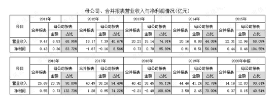 由上表可以清晰看出,2011-2019年,母公司贡献了合并报表后的大部分营收和利润,从这个角度也验证旗下子公司对营收和利润的贡献程度较小。