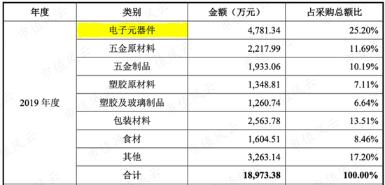 (北鼎股份原材料采购最多的是电子元器件)