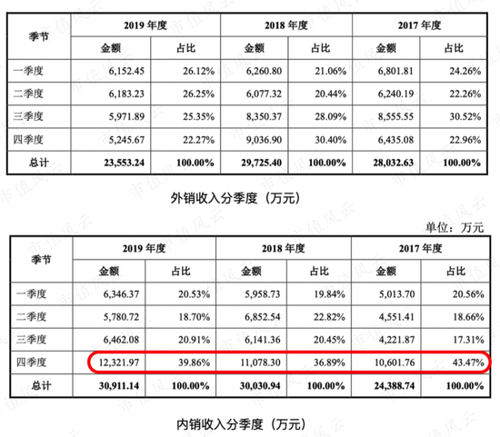 由于北鼎股份内销以线上业务为主,国内“双11购物狂欢节”在第四季度,因此,明显看到国内第四季度收入比其他季度多,而国外第四季度收入则和其他季度并无区别。