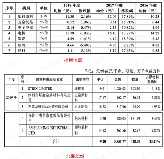 原材料采购价格也比竞争对手贵,比如北鼎股份五金制品的价格为18.22元/件,而小熊电器的为0.52元/件。