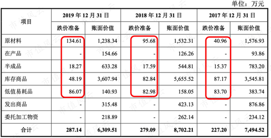 这里也顺便看看北鼎股份的存货情况。2019年北鼎股份的存货有0.63亿,最多的是库存商品,都做了跌价准备。