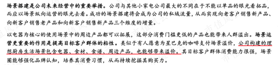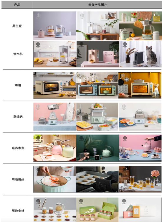 北鼎股份在《招股说明书》中介绍:以场景思维为产品发展逻辑,不断深挖和扩展使用场景,实现低频消费(厨房小家电)+中频消费(周边用品)+高频消费(周边食材)的生态。