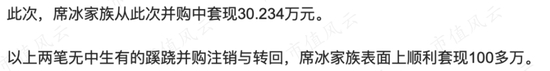 有媒体就认为席冰家族套现了100多万。