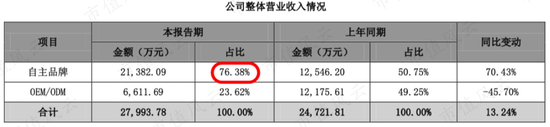 2020年上半年,OEM/ODM收入受疫情影响下滑明显,同比减少45.7%,但自主品牌大幅增长70.34%,占到总收入的76.38%,抵消了外销收入的下滑,最后整体营业收入还同比增长13.24%。